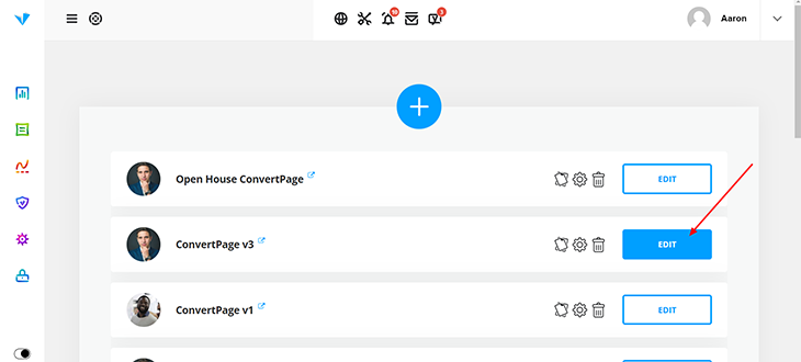 Apoi decideți cu ce ConvertPage doriți să lucrați (sau creați una nouă) și faceți clic pe Editare: