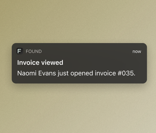Found vă anunță când o factură este vizualizată sau plătită și trimite mementouri automate clienților dvs. pentru a vă asigura că sunteți plătit la timp.