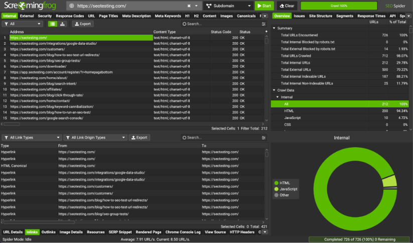 Odată ce accesarea cu crawlere este finalizată, veți avea o listă completă a tuturor adreselor URL accesibile de pe site-ul dvs. web, pe care apoi le puteți trece, unul câte unul, pentru a găsi toate „linkurile interne” și „linkurile externe” de pe site-ul dvs.