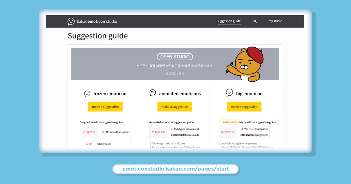 Emoticoanele Kakao au dus mesageria instantanee la un nou nivel cu personajele lor drăguțe și expresive. KakaoTalk le-a oferit acestor artiști cu emoticoane o platformă excelentă pentru a-și prezenta creațiile și pentru a profita de pe urma acestora. Puteți deveni un colaborator la Kakao Emoticons aici.