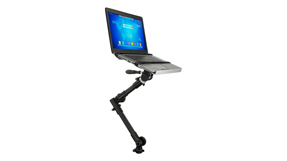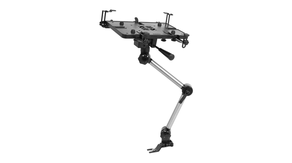 Alegere de top: Acesta trebuie să fie unul dintre cele mai bune suporturi pentru laptop pentru camioane. Acest suport nu necesită găurire. Este ușor de instalat pe partea pasagerului folosind șuruburile disponibile pentru scaun. Tava universală pentru laptop găzduiește o varietate de dimensiuni de laptop, variind de la ecrane cu lățime de la 10 la 17 inchi. De asemenea, puteți schimba cu ușurință tava pentru laptop cu un suport pentru tabletă oricând doriți. Acest suport este realizat din aluminiu de calitate marine și oțel acoperit cu pulbere și, dacă acest lucru nu este suficient, este susținut și de o garanție pe viață.