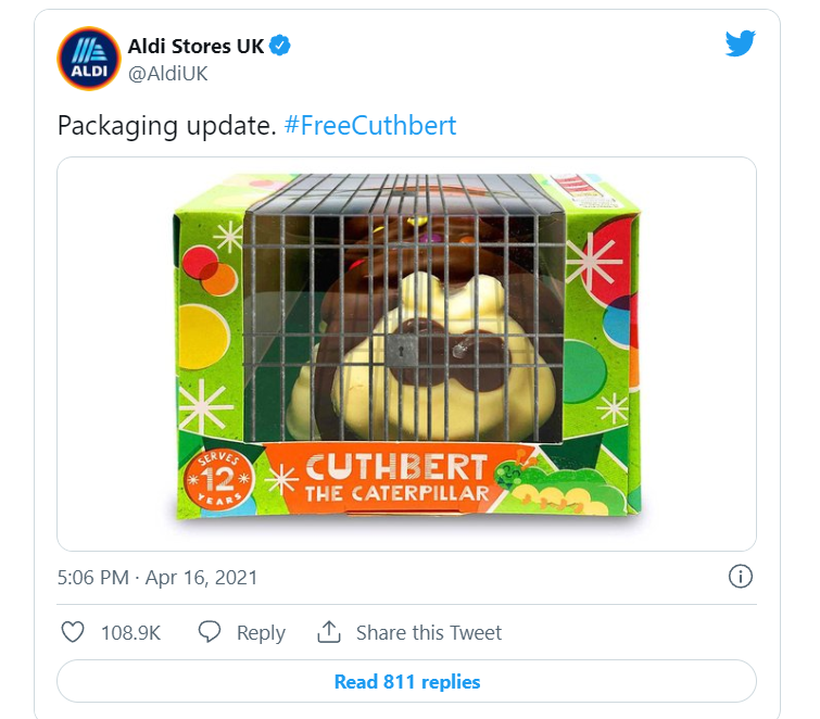 Să luăm ca exemplu fiasco-ul lui Aldi Cuthbert the Caterpillar. Cu legendarul prăjitură cu caracter omida M&S, Colin, deja ferm stabilit în Marea Britanie, acest nou puști de la bloc nu i-a stat bine cu gigantul supermarketurilor de lux. De fapt, M&S a luat acțiuni legale împotriva lui Aldi pentru acest tort imitator. Pe lângă faptul că și-a luptat colțul în teren, Aldi a apelat la rețelele de socializare pentru a câștiga publicul și pentru a-și „răzbuna”. Si ghici ce? A mers! Potrivit Marketing Week, „acoperirea organică a lui Aldi a echivalat cu cheltuieli media în valoare de peste 5 milioane de lire sterline – în ciuda faptului că nu a cheltuit niciodată un ban”.
