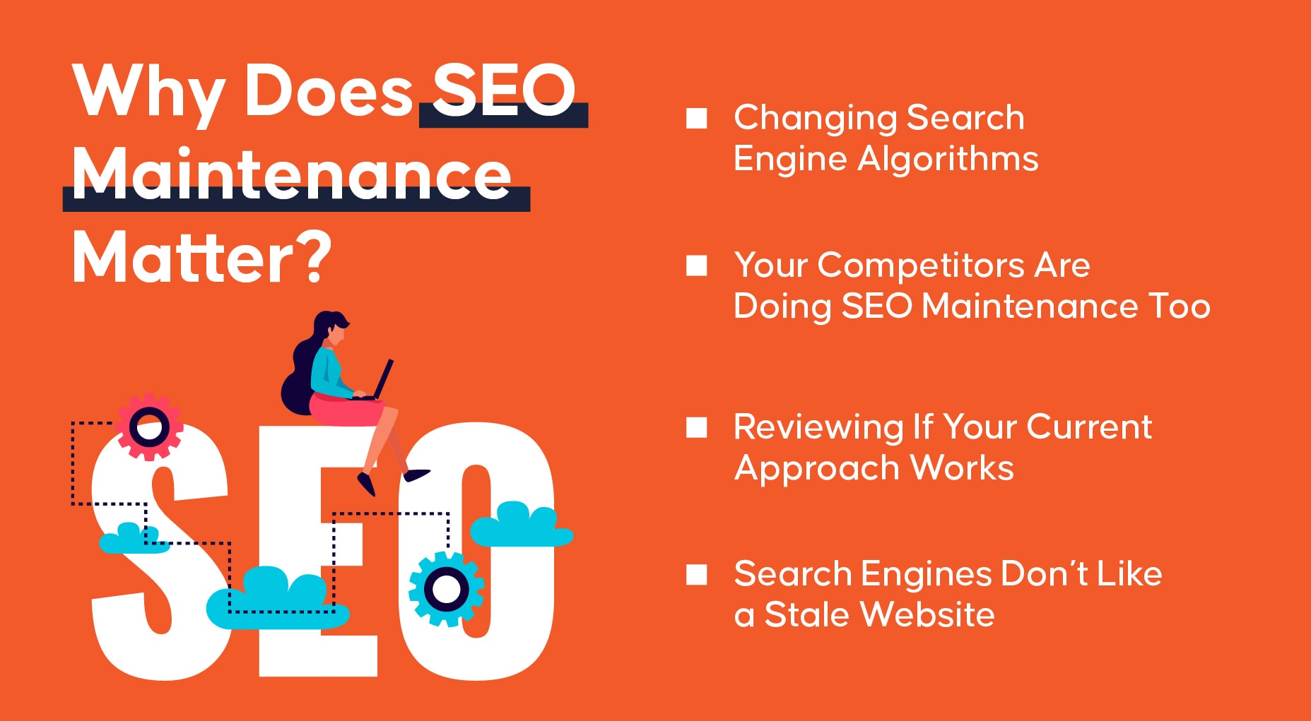 Optimizarea pentru motoarele de căutare (SEO) este esențială pentru companiile online pentru a-și dezvolta gradul de cunoaștere a mărcii, pentru a se poziționa pe motoarele de căutare, pentru a genera trafic către site-ul lor web și, în cele din urmă, pentru a genera clienți potențiali. Companiile investesc în servicii de optimizare pentru motoarele de căutare atunci când încep să-și construiască prezența online. O campanie de succes SEO cuprinde două părți, SEO on-page și SEO off-page. Cu toate acestea, o campanie SEO nu este o practică unică care garantează trafic online consistent și clasamente ridicate pe motoarele de căutare. Este o strategie pe termen lung și aici intervine întreținerea SEO.