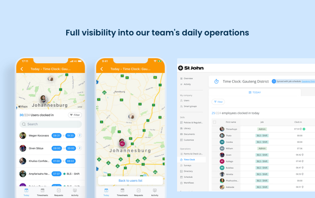 Connecteam ne-a oferit și un nivel de supraveghere la nivel național pentru a ști ce fac nivelurile noastre locale. Pentru divizia noastră din Johannesburg, avem o supraveghere imediată a ceea ce fac zilnic membrii și personalul nostru, ceea ce înainte nu aveam. Ne-am bazat pe rapoarte manuale care erau raportate o dată pe lună de cineva care poate nici nu vedea toți oamenii.
