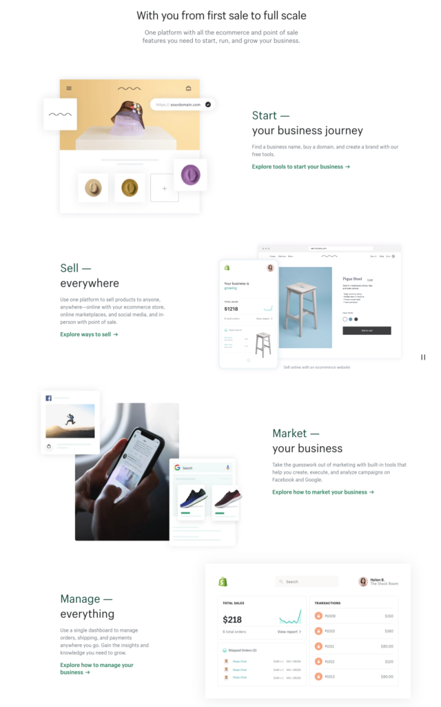 De exemplu, Shopify folosește copie UX pentru a ajuta potențialii proprietari de magazine să-și imagineze simplitatea lansării unei afaceri online.