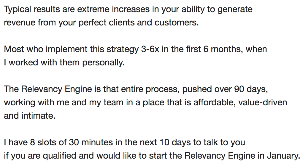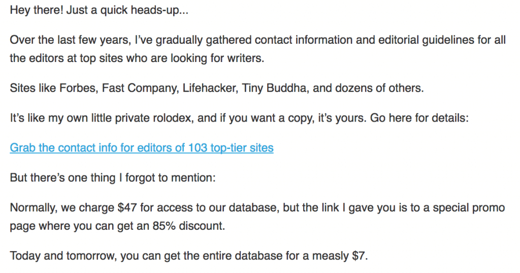 În e-mailul pe care l-am menționat mai devreme, unde Jon Morrow oferă o reducere de 85% la unul dintre produsele sale, dă această explicație.