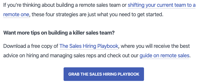 Închiderea folosește CTA-urile pe blogul lor, incluzând una la sfârșitul fiecărei postări, pentru a oferi cititorilor lor un pas clar următor: