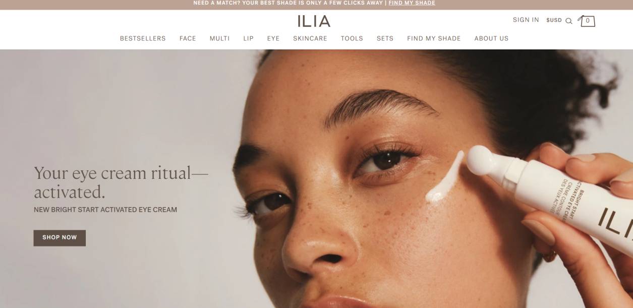 Ilia Beauty, основанная в Канаде в 2011 году, является брендом чистой косметики, который использует Shopify для создания естественно выглядящей витрины интернет-магазина, отражающей их бренд и его этику.