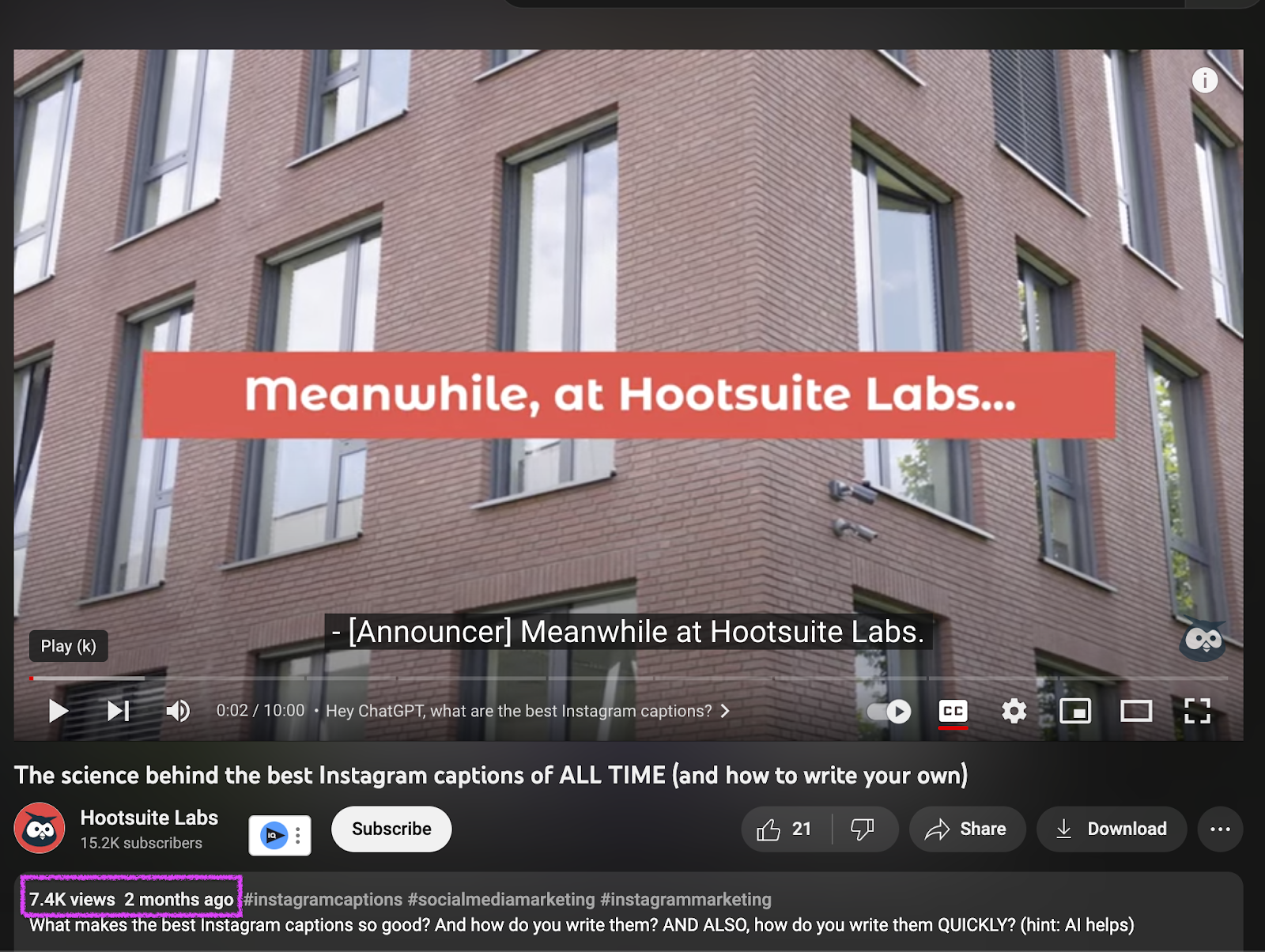 Поиск видео в Google по ключевому слову «подписи для Instagram», по которому ежемесячно выполняется более 570 000 поисковых запросов, показывает, что Hootsuite занимает второе место в рейтинге.