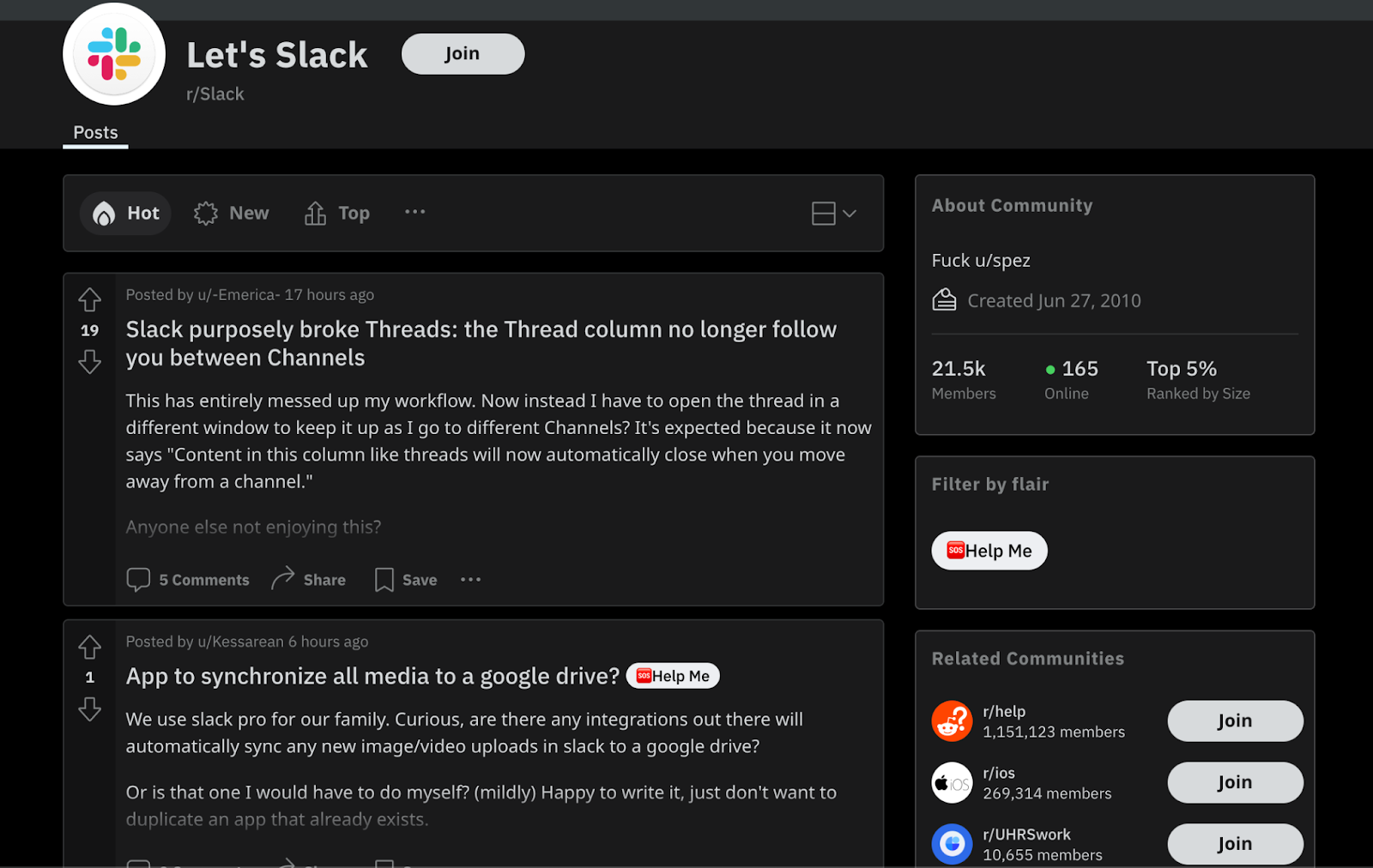 У Slack есть сабреддит с 21 500 участниками , пространство, где пользователи общаются друг с другом, делятся опытом, задают вопросы и оставляют отзывы.