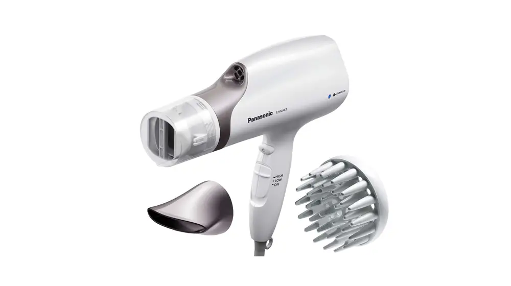 Второе место: Второй выбор — фен Panasonic Nanoe Salon. Этот ультрасовременный фен поставляется с тремя насадками, обеспечивающими универсальные варианты укладки и здоровые волосы для вас и ваших клиентов. Две скорости и три температурных режима позволяют работать с разными типами и стилями волос.