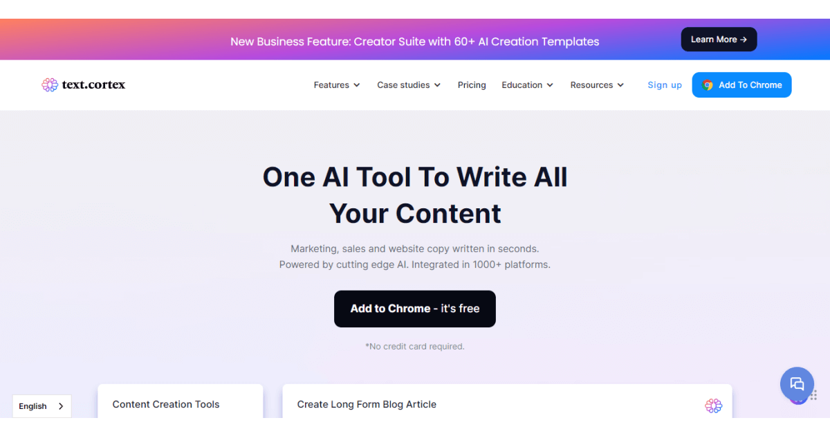 У Text Cortex есть бесплатный план, который состоит из 10 ежедневных творений и двух премиальных планов.