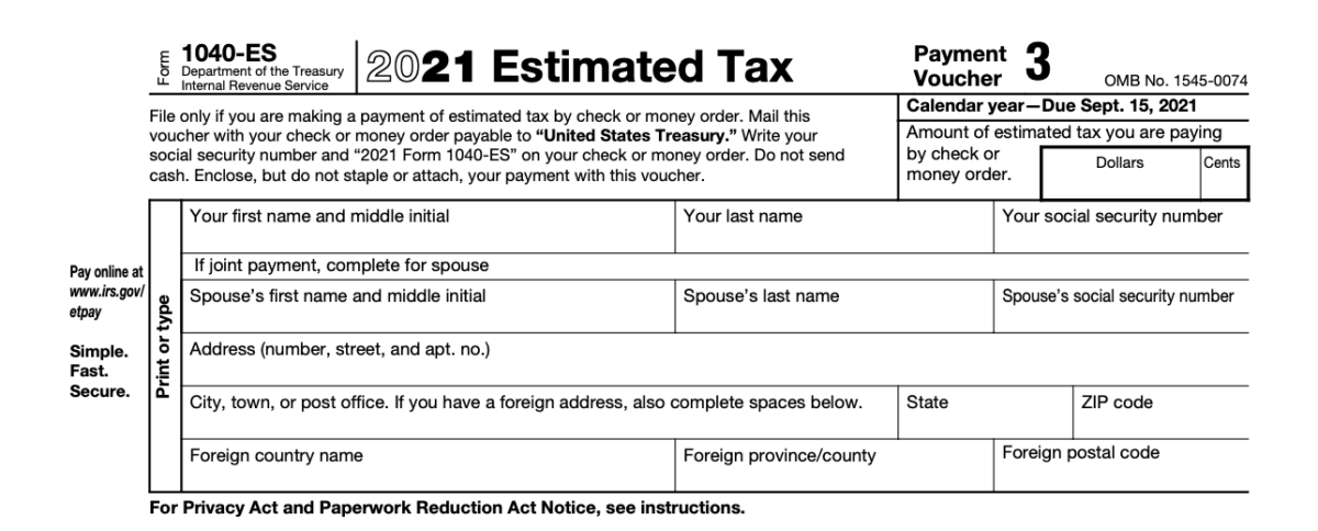 Предполагаемые налоги обычно делятся на четыре платежа в рассрочку, подлежащих уплате 15 апреля, 15 июня, 15 сентября и 15 января, которые вы платите до подачи налоговой декларации за год. Вы будете подавать эти ежеквартальные платежи вместе с формой 1040-ES.
