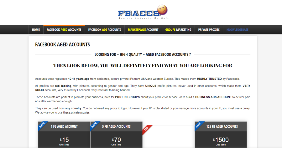 В постоянно меняющемся мире маркетинга в социальных сетях магазин FB всегда является лучшим вариантом для приобретения высококачественных учетных записей Facebook. У них есть широкий выбор вариантов, поэтому, нужна ли вам старая или новая учетная запись, у них есть то, что вы ищете. Все учетные записи являются ценными, активными и безопасными, поэтому вы можете быть уверены, что получаете отличный продукт.