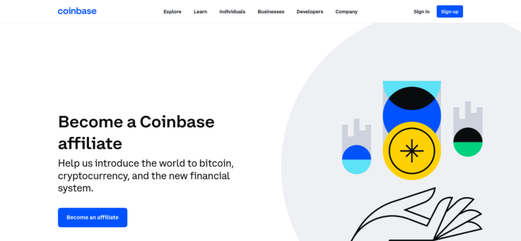 Если вы хотите начать работу с Coinbase, вам необходимо подать заявку на участие в партнерской программе, заполнив форму на веб-сайте. Если вас одобрят, вам будет предоставлена настраиваемая партнерская ссылка, которую вы можете использовать для продвижения компании.