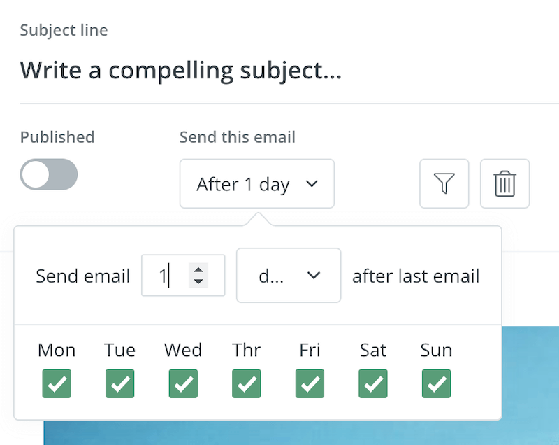 После того, как вы настроили эти параметры, нажмите «Опубликовано» . Рядом с этой кнопкой вы можете установить расписание для следующего письма: