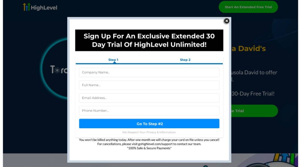 Однако вы можете получить доступ к расширенной 30-дневной пробной версии благодаря нашим эксклюзивным предложениям и рекламным акциям в рамках партнерства с командой GoHighLevel.