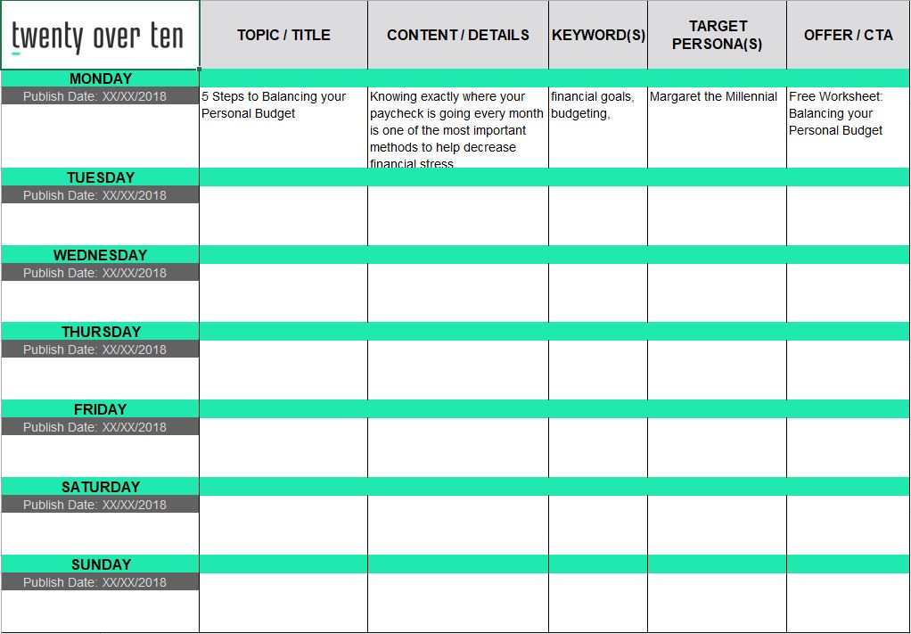 После того, как вы определились с идеями для блога и хотите опубликовать их, чрезвычайно полезно составить стратегический план, чтобы это произошло. Мы рекомендуем использовать редакционный календарь, подобный приведенному ниже [скачать здесь!], чтобы помочь вам достичь целей блога и эффективно спланировать их достижение.