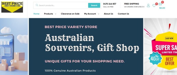 Вы можете заказать незабываемые моменты в магазинах Best Price Variety, как в Австралии, так и в Австралии, и заказать их доставку прямо к вашему порогу. Этот сувенирный магазин в Перте предлагает огромный выбор товаров, созданных в Австралии, включая мягкие предметы, диаграммы, сумки с крышками, часы, кошельки, брелки, наклейки на холодильник и многое другое.