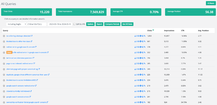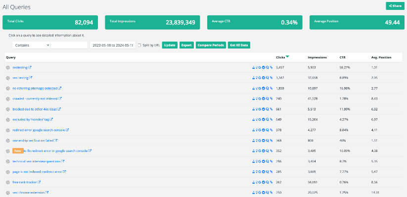 Перейдите к отчету «Все запросы» в своей учетной записи SEOTesting: