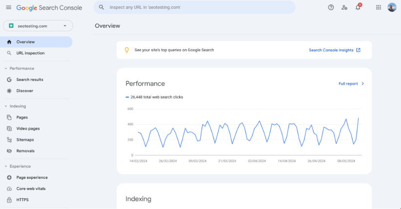 Чтобы найти легкие плоды в своей учетной записи Google Search Console, начните с перехода на панель управления своей учетной записью: