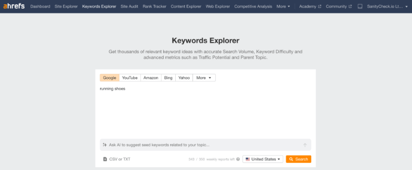 Для начала зайдите в проводник ключевых слов Ahrefs и введите ключевое слово head, по которому вы хотите провести небольшое исследование: