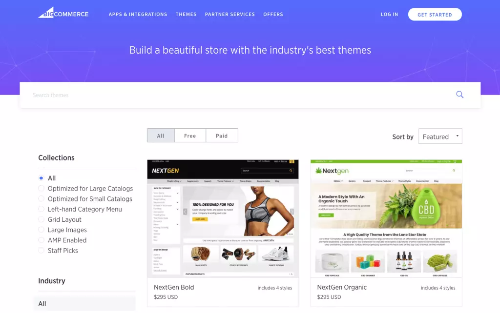 С другой стороны, BigCommerce также предлагает более 100 адаптивных тем с 12 бесплатными темами для владельцев магазинов с ограниченным бюджетом. Платные темы BigCommerce стоят от 150 до 399 долларов.