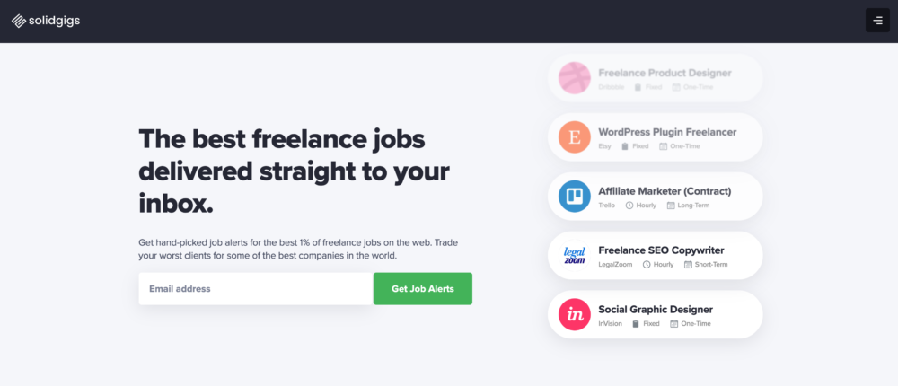 Если вы обнаружите, что охота за концертами отнимает все ваше время, SolidGigs — это веб-сайт, который найдет для вас писательскую работу. Они просматривают Интернет, чтобы найти лучшие внештатные писательские работы на всех писательских сайтах и отправить их прямо вам — все, что вам нужно сделать, это подать заявку.
