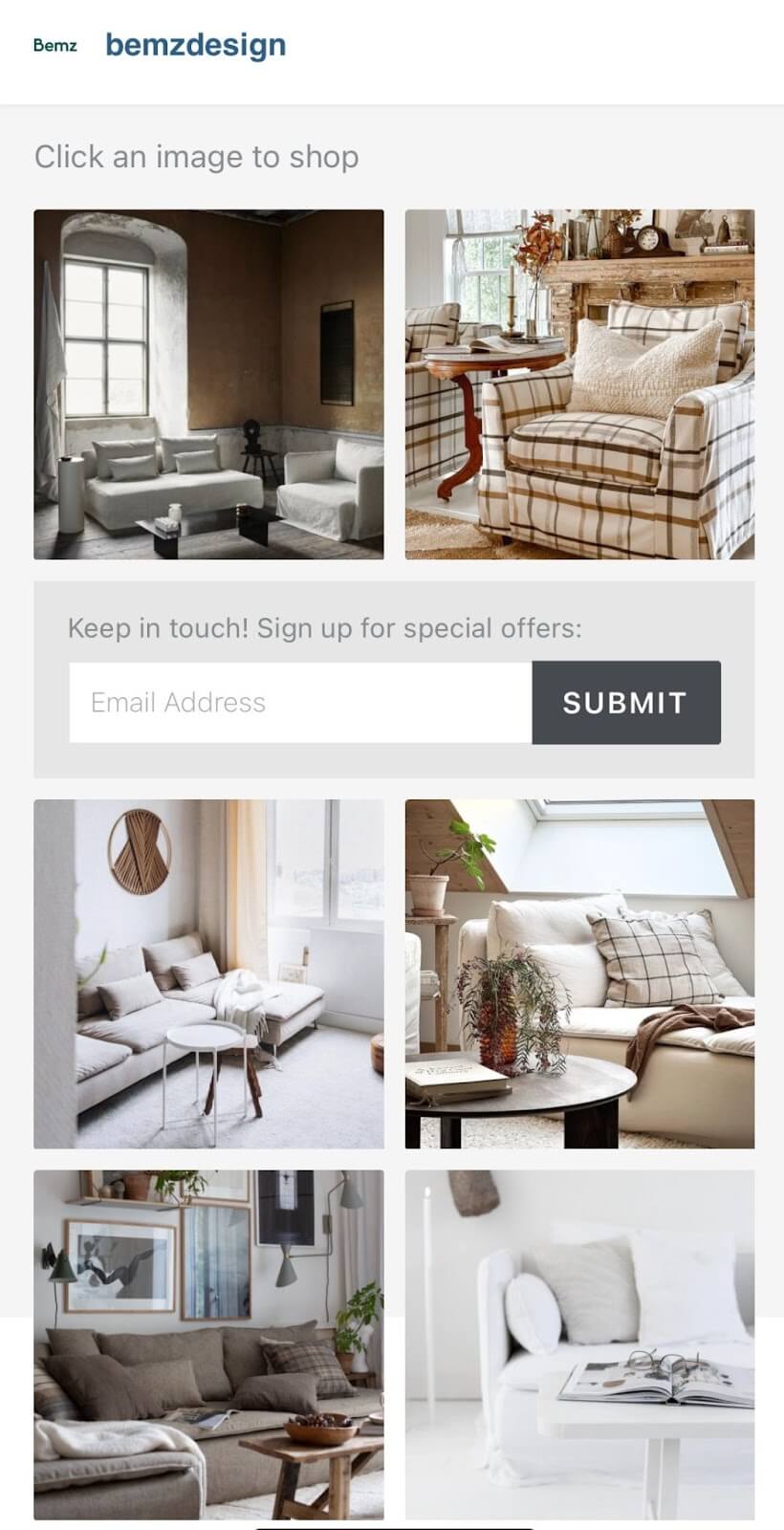รูปแบบธุรกิจของ Bemz อาศัยการปรับเปลี่ยนในแบบของคุณ และประสบการณ์อีคอมเมิร์ซสำหรับลูกค้าก็เช่นกัน Bemz ผลิตผ้าหุ้มตามสั่งสำหรับเฟอร์นิเจอร์ของอิเกีย ด้วยตัวเลือกผลิตภัณฑ์มากมาย แบรนด์จึงตระหนักว่าจำเป็นต้องมี UGC เพื่อให้ผู้ซื้อเห็นภาพผลิตภัณฑ์ของตนในสภาพแวดล้อมจริงได้อย่างถูกต้อง