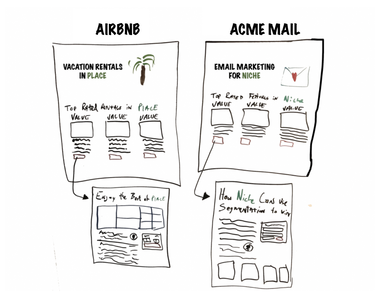 ดังนั้น แทนที่จะสร้างชุดของหน้า Landing Page ที่มีไว้เพื่อไล่ตามสถานที่ต่างๆ – สร้างหน้า Landing Page ที่พูดถึงกลุ่มลูกค้าเฉพาะกลุ่มต่างๆ ที่ชื่นชอบผลิตภัณฑ์ของคุณ สมมติว่าคุณใช้งานผลิตภัณฑ์ชื่อ Airmail (กลายเป็นสินค้าจริง) และต้องการสร้างคูน้ำเหมือน Airbnb