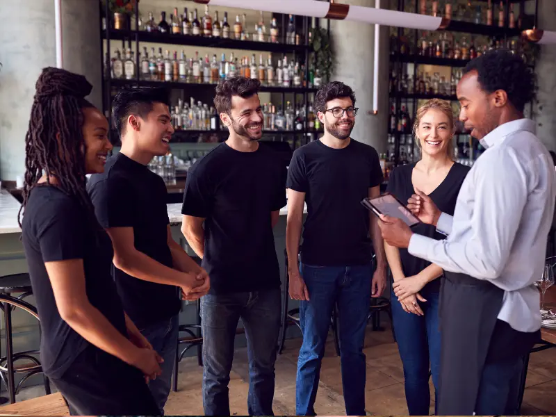 - การจัดหาพนักงาน : การมีทีมงานที่เชื่อถือได้และผ่านการฝึกอบรมมาอย่างดีสามารถจัดตั้งได้อย่างรวดเร็วและให้บริการอย่างมืออาชีพเป็นกุญแจสำคัญ ตรวจสอบให้แน่ใจว่าคุณสร้างโปรแกรมการฝึกอบรมบาร์เทนเดอร์เต็มรูปแบบเพื่อสอนสมาชิกในทีมถึงวิธีจัดการบาร์ แถบบาร์คืออะไรและใช้งานอย่างไร วิธีตรวจหาฟีเจอร์ปลอม ID และวิธีวางแผนการรวบรวมข้อมูลบาร์หรือดำเนินการริเริ่มทางการตลาดบาร์อื่นๆ ที่คุณวางแผนจะรวมไว้ จากนั้นจัดเตรียมรายการตรวจสอบการเปิดและปิดบาร์และเอกสารอื่นๆ ที่พวกเขาอาจต้องใช้ในการทำงานต่อไป