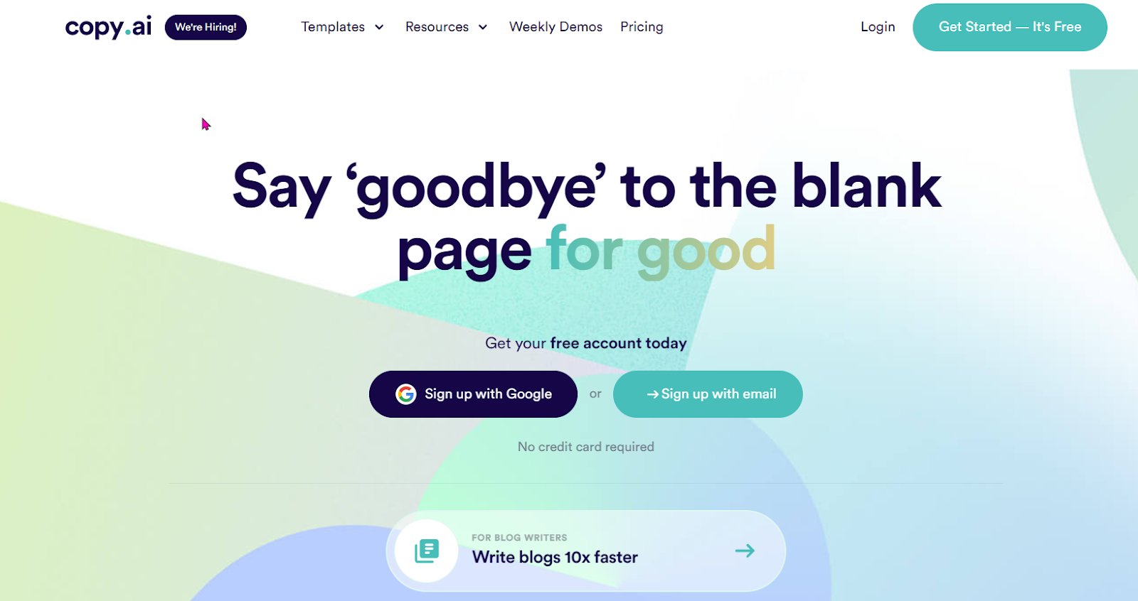Copy.ai เป็นซอฟต์แวร์การเขียนคำโฆษณาฟรีที่สามารถสร้างเนื้อหาที่ไม่ซ้ำใครตามอินพุตของผู้ใช้หรือแหล่งข้อมูลที่มีอยู่ก่อน เป็นที่นิยมเนื่องจากใช้งานง่ายและมีความแม่นยำสูง