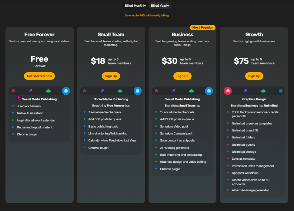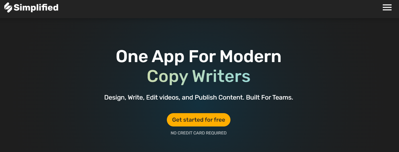 Simplified เป็นเครื่องมือการเขียนคำโฆษณาฟรีที่นอกเหนือจากแผนฟรียังมีแผนพรีเมียมเพิ่มเติมอีก 3 แผน