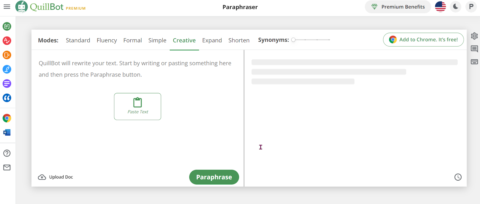อินเทอร์เฟซที่ใช้งานง่ายของ QuillBot ทำให้สามารถถอดความ สรุป อ้างอิง ตรวจสอบข้อผิดพลาดทางไวยากรณ์ และตรวจสอบเนื้อหาสำหรับการลอกเลียนแบบได้อย่างรวดเร็วและแม่นยำ