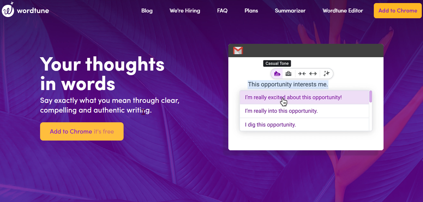 Wordtune เป็นซอฟต์แวร์การเขียนคำโฆษณาฟรีอีกตัวที่เน้นการเรียบเรียงงานเขียนของคุณใหม่เพื่อให้ได้น้ำเสียงและผลลัพธ์ที่สมบูรณ์ยิ่งขึ้น