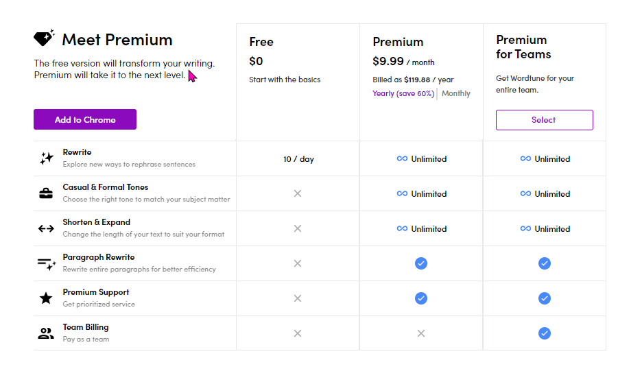 Wordtune มาพร้อมกับแผนพรีเมียมฟรี 2 แผน
