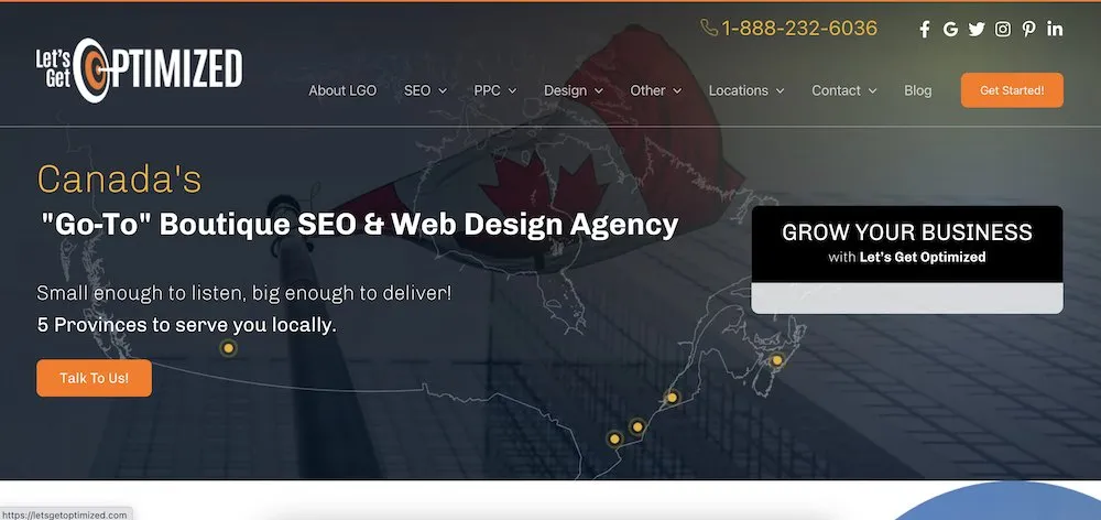 Let's Get Optimized เป็นหน่วยงาน SEO บูติกและการออกแบบเว็บไซต์ที่มีผู้เชี่ยวชาญชั้นนำในอุตสาหกรรมและโครงการที่เสร็จสมบูรณ์แล้วกว่า 1,000 โครงการ บริษัทเสนอแพ็คเกจ SEO ที่ปรับให้เหมาะสมเพื่อช่วยขยายการมองเห็นออนไลน์ของธุรกิจของคุณ ทีมงานของพวกเขาประกอบด้วยผู้เชี่ยวชาญและที่ปรึกษา SEO ชั้นนำของแคนาดา และในฐานะบริษัท พวกเขาได้รับรางวัลหลายรางวัลจาก Clutch สำหรับการเป็นบริษัท SEO ที่มีคะแนนสูงสุด บริษัทสามารถช่วยด้าน SEO ทั้งสามด้านหลัก ได้แก่ SEO ด้านเทคนิค การเพิ่มประสิทธิภาพในหน้า และการเพิ่มประสิทธิภาพนอกหน้า นอกจากนี้ยังสามารถช่วยจัดหาโซลูชั่น SEO เหล่านี้ให้กับอุตสาหกรรมต่างๆ ตั้งแต่การดูแลสุขภาพและกฎหมาย ไปจนถึงการศึกษาระดับอุดมศึกษาและการเดินทาง