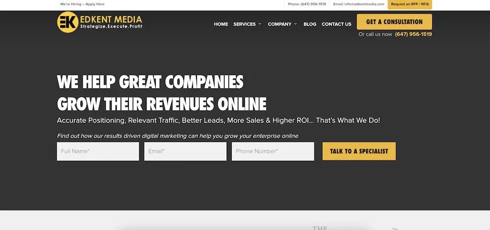 EDKENT Media คือบริษัทการตลาดทางอินเทอร์เน็ตที่ช่วยให้บริษัทต่างๆ สร้างการเข้าชมที่เกี่ยวข้อง โอกาสในการขายที่ดีขึ้น ยอดขายที่เพิ่มขึ้น และ ROI ที่สูงขึ้น วิธีหนึ่งที่พวกเขาบรรลุเป้าหมายนี้คือการทำ SEO บริษัทช่วยองค์กรธุรกิจในท้องถิ่นและอีคอมเมิร์ซ บริการ SEO ของบริษัทรวมถึงการเพิ่มประสิทธิภาพในหน้า การตรวจสอบทางเทคนิค การวิเคราะห์คู่แข่ง การวิเคราะห์ลิงก์ย้อนกลับ การวิจัยคำหลัก การวิจัยเนื้อหา และกลยุทธ์และการดำเนินการ SEO ที่กำหนดเอง EDKENT Media ดำเนินการตามกระบวนการอย่างเป็นระบบเพื่อให้แน่ใจว่าคุณได้รับผลลัพธ์ พวกเขามีผู้เชี่ยวชาญด้านโดเมนจากสาขาต่างๆ ในทีม ซึ่งช่วยให้พวกเขาสามารถจัดหาโซลูชันแบบกำหนดเองสำหรับความต้องการเฉพาะของคุณ