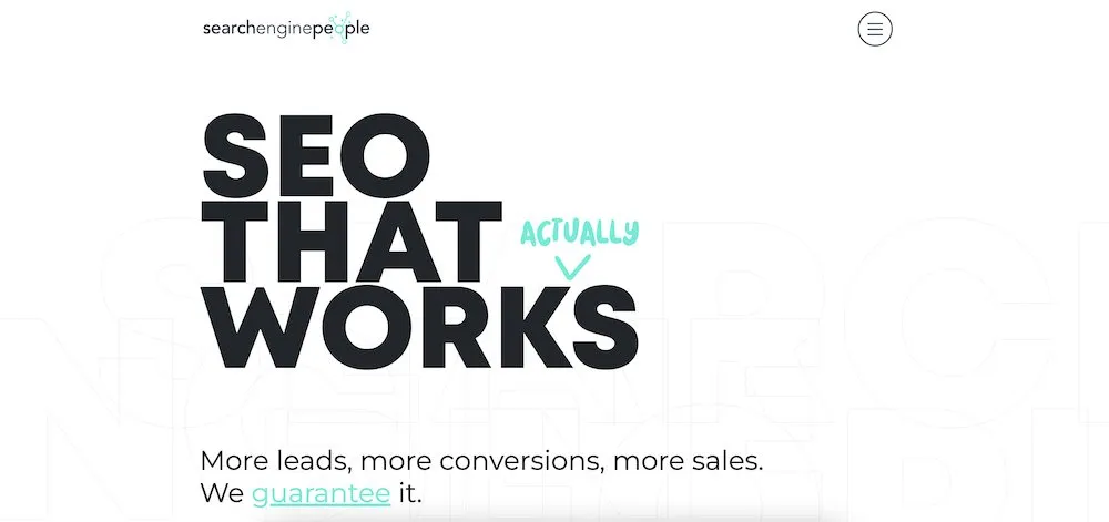 Search Engine People คือบริษัท SEO ที่ช่วยให้บริษัทต่างๆ สร้างโอกาสในการขายเพิ่มขึ้น และเพิ่ม Conversion และยอดขาย บริษัทมีประสบการณ์มากกว่า 20 ปีและทำงานร่วมกับลูกค้ากว่า 2,000 ราย พวกเขายังให้การรับประกันไม่ใช่สำหรับการจัดอันดับเฉพาะ แต่จะมีผลดีต่อธุรกิจของคุณ พวกเขาให้บริการ SEO ต่างๆ บริการเหล่านี้รวมถึงการตรวจสอบความสามารถในการรวบรวมข้อมูล การวิจัยคำหลัก SEO ในพื้นที่ การตรวจสอบความเร็วไซต์ SEO ด้านเทคนิค การสร้างเนื้อหา และอื่นๆ Search Engine People มีพนักงานเต็มเวลามากกว่า 70 คนที่มุ่งเน้นการช่วยเหลือลูกค้าในการปรับปรุง SEO และได้ทำงานร่วมกับบริษัทต่างๆ เช่น Panasonic, RE/MAX และ Subaru