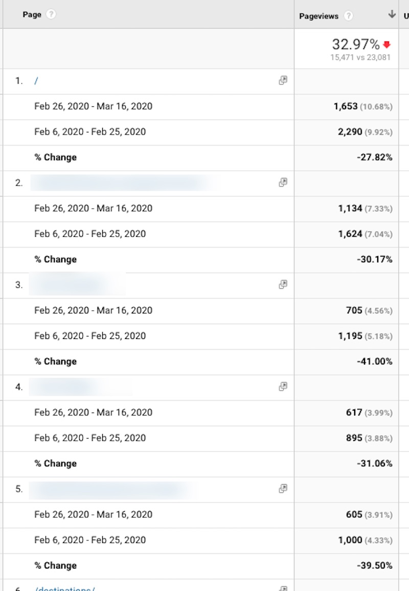 เมื่อเราเปรียบเทียบสิ่งนี้กับช่วงเวลาก่อนหน้า เราจะเห็นว่าหน้าส่วนใหญ่ในไซต์ทั้งหมดลดลงประมาณ 30%
