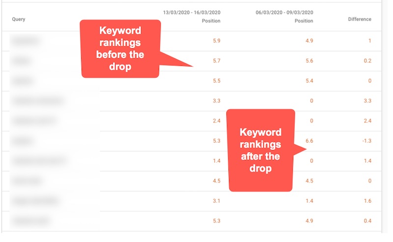 หากคุณ เห็นว่าอันดับลดลงอย่างมาก คุณควรตรวจสอบ สาเหตุ หากอันดับทั้งหมดของคุณลดลงอย่างเห็นได้ชัด อาจเป็นการคุ้มค่าที่จะตรวจสอบว่าคุณมีปัญหาทางเทคนิคกับไซต์ของคุณหรือไม่ หรือตามที่กล่าวไว้ข้างต้น มีปัญหาอื่นนอกเหนือจาก COVID-19 หรือไม่