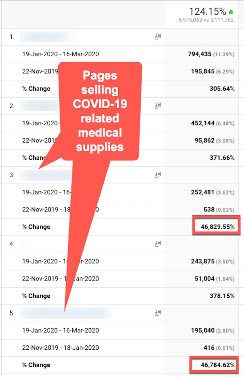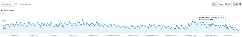 สำหรับบางท่านที่กำลังอ่านบทความนี้ รูปแบบการเข้าชมเว็บไซต์ของคุณจะง่ายต่อการถอดรหัส ตัวอย่างเช่น หากคุณเปิดเว็บไซต์พูดคุยเกี่ยวกับการเดินทางไปอิตาลี การเข้าชมจะลดลง แต่สำหรับหลายๆ คน การพิจารณาว่าการเข้าชมที่ลดลงที่คุณเห็นนั้นเกี่ยวข้องกับโควิด-19 หรืออย่างอื่นอาจเป็นเรื่องท้าทาย