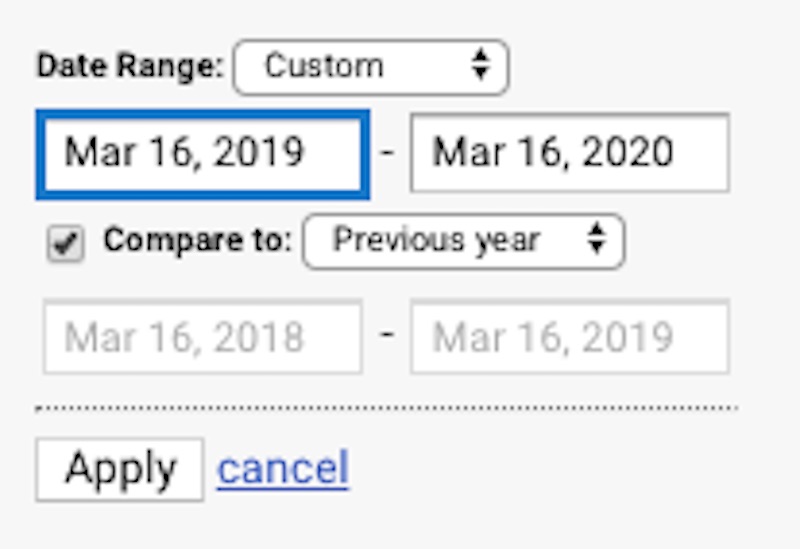 - ตั้งวันที่เพื่อแสดงระยะเวลาที่เหมาะสม เราชอบที่จะเห็นมุมมองหนึ่งปีเมื่อดูการจราจร YOY แล้วเปรียบเทียบกับปีที่แล้ว