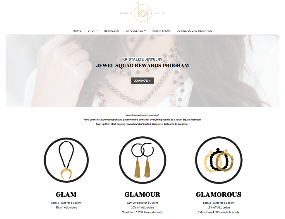 ด้วยระดับ VIP ที่ยอดเยี่ยมเท่ากันสามระดับ โปรแกรมความภักดีของ Kristalize Jewelry ทำให้ลูกค้าทุกคนรู้สึกเหมือนเป็นสมาชิกของคลับระดับหัวกะทิ โครงสร้างนี้สร้างประสบการณ์เชิงบวกที่ผลักดันให้ลูกค้าได้รับคะแนนมากขึ้นเพื่อให้ได้รับเกียรติจากการถูกเรียกว่ากลามอรัส