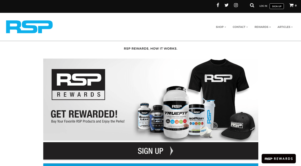 RSP Nutrition ใช้ประโยชน์จากผลิตภัณฑ์อันน่าทึ่งของพวกเขาโดยใช้ผลิตภัณฑ์เหล่านี้เป็นของสมนาคุณระดับพรีเมียมในโปรแกรมรางวัลของพวกเขา การเน้นย้ำรางวัลเหล่านี้ใน หน้าอธิบาย ทำให้เห็นคุณค่าของโปรแกรมได้ง่ายสำหรับทั้งลูกค้าใหม่และลูกค้าที่กลับมาซื้อซ้ำ