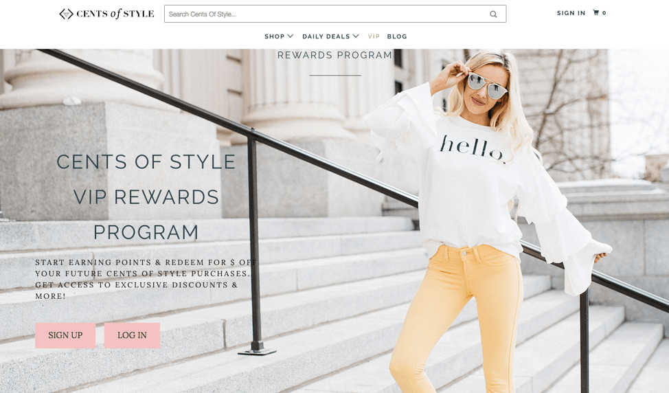 Cents of Style ให้รางวัลแก่ลูกค้าที่มีค่าที่สุดของพวกเขาสำหรับการซื้อของ มีส่วนร่วมกับโซเชียลมีเดีย และแนะนำเพื่อน ๆ ให้ไปที่ร้านค้าของพวกเขา คุณสมบัติของโปรแกรมเหล่านี้ช่วยให้ลูกค้าเก็บตู้เสื้อผ้าไว้เต็มและมีส่วนร่วมสูงตลอดทั้งปี