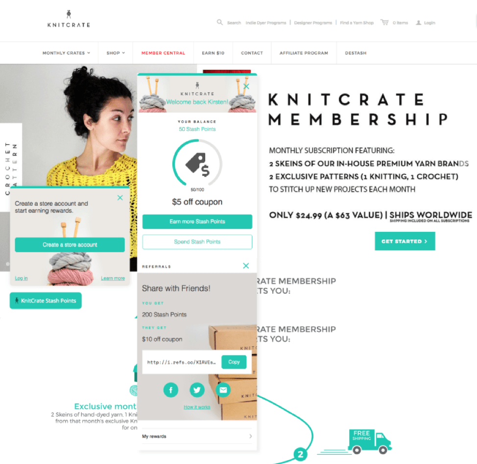 ด้วยโปรแกรมสะสมคะแนน Stash Points ของพวก เขา Knitcrate ทำให้บริการสมัครสมาชิกของพวกเขามีค่ายิ่งขึ้นด้วยการให้รางวัลแก่ลูกค้าสำหรับการดำเนินการต่างๆ มากมาย รวมถึงการอ้างอิง การซื้อ และบทวิจารณ์