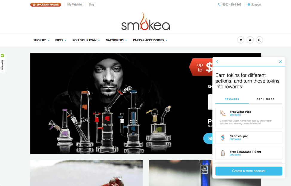 Smokea ได้จัดทำ โปรแกรม Smokea Rewards เป็นส่วนสำคัญของประสบการณ์ของลูกค้าที่ทำให้ผู้ซื้อชื่นชอบแบรนด์ของพวกเขา ด้วยการตั้งชื่อสกุลเงินรางวัลอย่างชาญฉลาดว่า “โทเค็น” พวกเขาได้รวมโปรแกรมของตนเข้ากับส่วนที่เหลือของร้านค้าอย่างราบรื่น และทำให้เป็นส่วนขยายตามธรรมชาติของประสบการณ์แบรนด์โดยรวมของพวกเขา