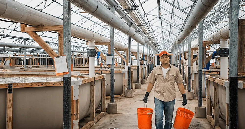 อุปกรณ์หนัก – หากคุณใช้งานภายในอาคาร สามารถทำได้ง่ายๆ เพียงแค่มีอุปกรณ์พื้นฐานสำหรับเคลื่อนย้ายอาหารสัตว์จากอาคารจัดเก็บไปยังอาคารเพาะเลี้ยงปลา หากคุณอยู่กลางแจ้ง คุณจะต้องใช้อุปกรณ์หนักที่สามารถรักษาพื้นที่ไหลเข้าและออกของบ่อได้ แม้กระทั่งสร้างพื้นที่ใหม่หากจำเป็น