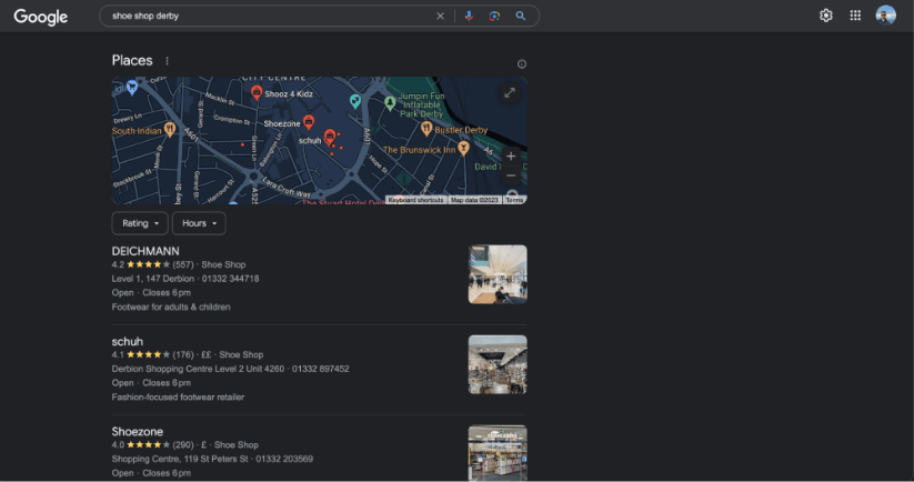 ทั้งหมดเกี่ยวข้องกับที่ตั้งของพวกเขา ตัวอย่างเช่น หากฉันต้องค้นหา "ร้านกีฬาในดาร์บี้" โดย Google SEO ในท้องถิ่นจะช่วยให้ธุรกิจมีอันดับที่ดีสำหรับการค้นหาประเภทนี้